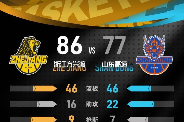 第四节,山东高速展开了反击,努力将分差缩小至3分,展现出顽强的斗志。然而,在比赛的后段,浙江方兴渡保持了良好的进攻节奏,稳步扩大领先优势,最终以86-77战胜山东高速,赢得了比赛的胜利。